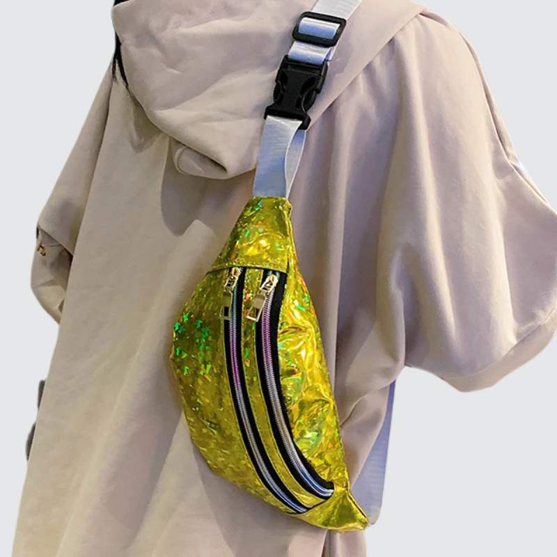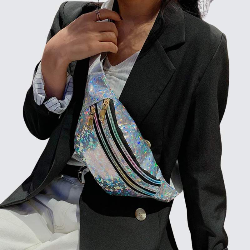 Illuminez votre style avec le Sac banane brillant aux reflets multicolores