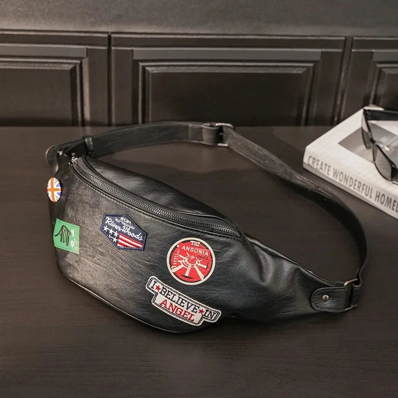 Polyvalence inégalée avec le sac banane cuir avec écussons
